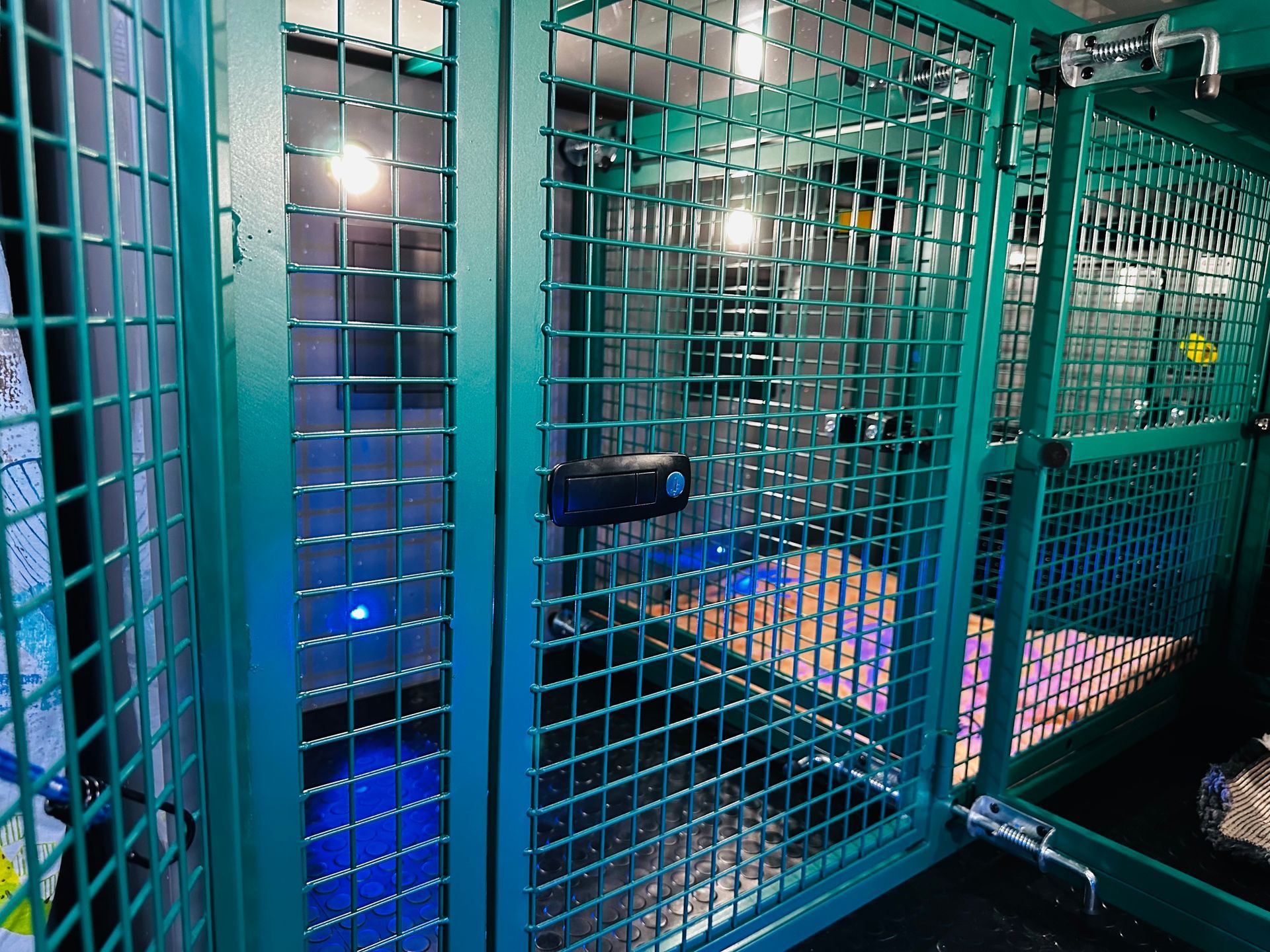 Air-conditioned vehicles designed to transport pets with LED lights and electric air ventilation intake/extraction.